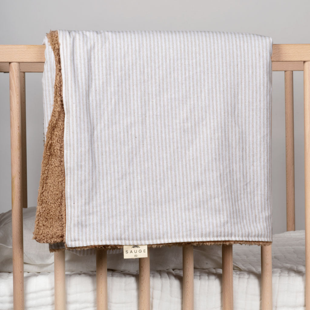 Ces magnifiques couvertures doublées d’un Minky style Sherpa extrêmement doux, vous charmera au premier toucher. La couverture gardera au chaud votre bébé dans son cocon moelleux lors des siestes ou des promenades. Durant les jours plus chauds, utilisez là du côté tissus pour garder la fraicheur tout en aillant l’effet moelleux du Sherpa.