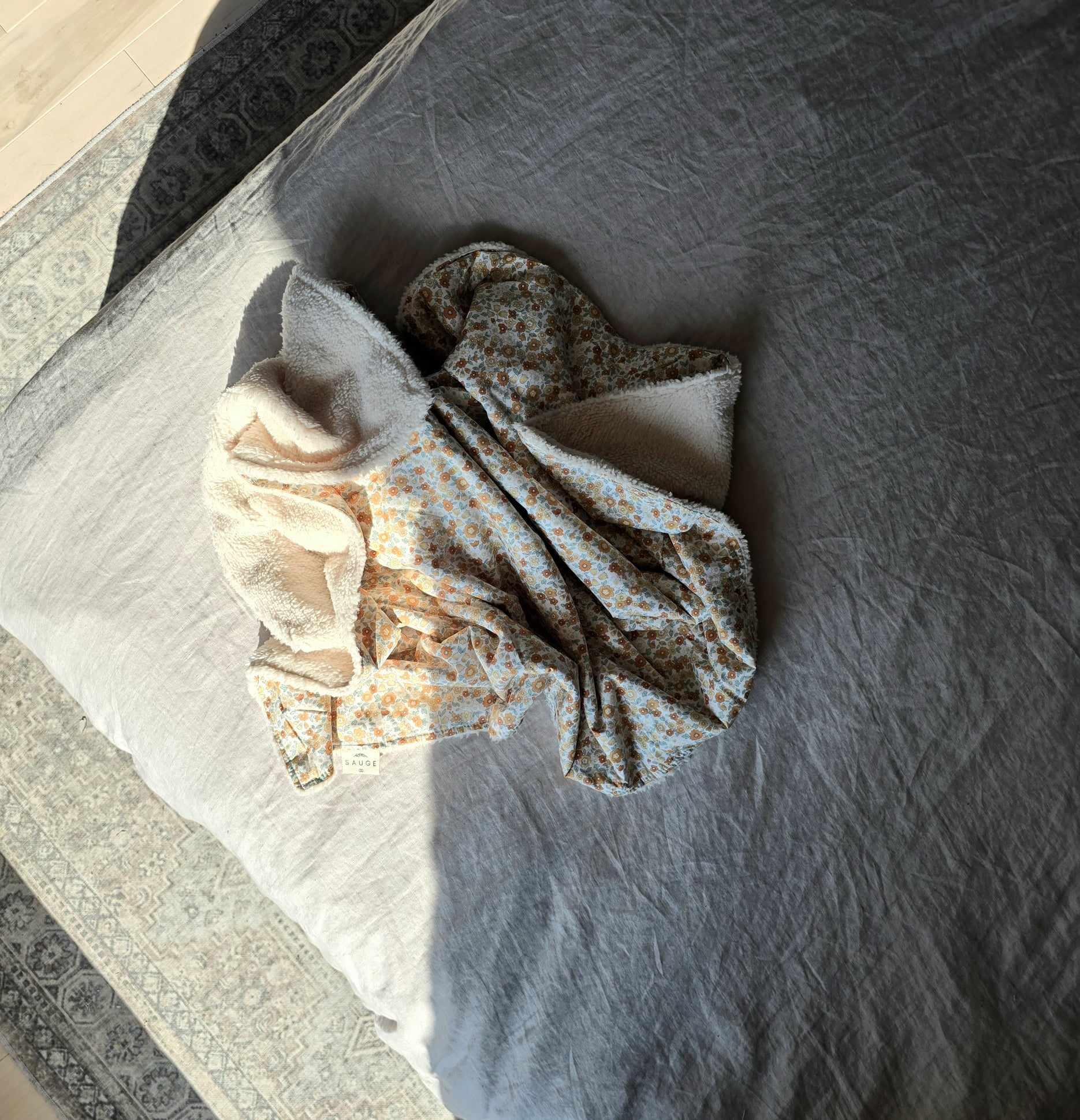 Cette magnifique couverture doublée d’un Minky style Sherpa extrêmement doux vous charmera au premier toucher. La couverture gardera au chaud votre bébé dans son cocon moelleux lors des siestes ou des promenades. Durant les jours plus chauds, utiliser du côté tissus pour garder la fraicheur tout en ayant l’effet moelleux du Sherpa.