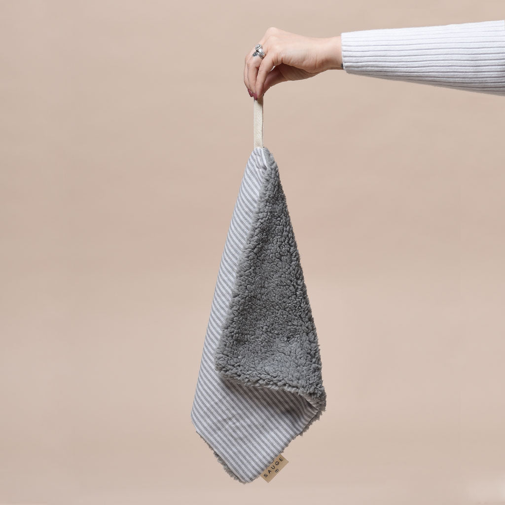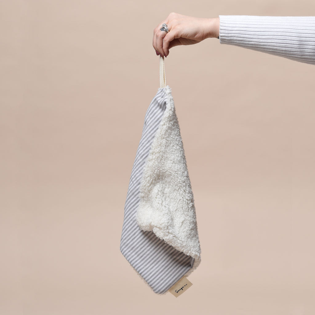 Mini Lin ligné gris bleuté | Sherpa crème