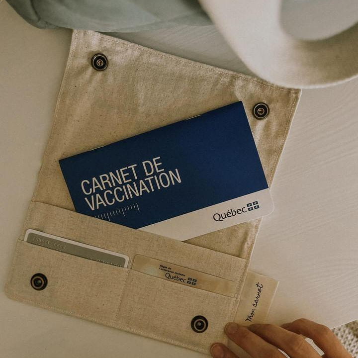 - Petit protège carnet personnalisé fait de lin et de coton est idéal pour garder le carnet de vaccination, la carte d’assurance maladie et la carte d’hôpital tout au même endroit. Il y a un espace pour le carnet de vaccination, le passeport et 2 espaces pour les cartes.