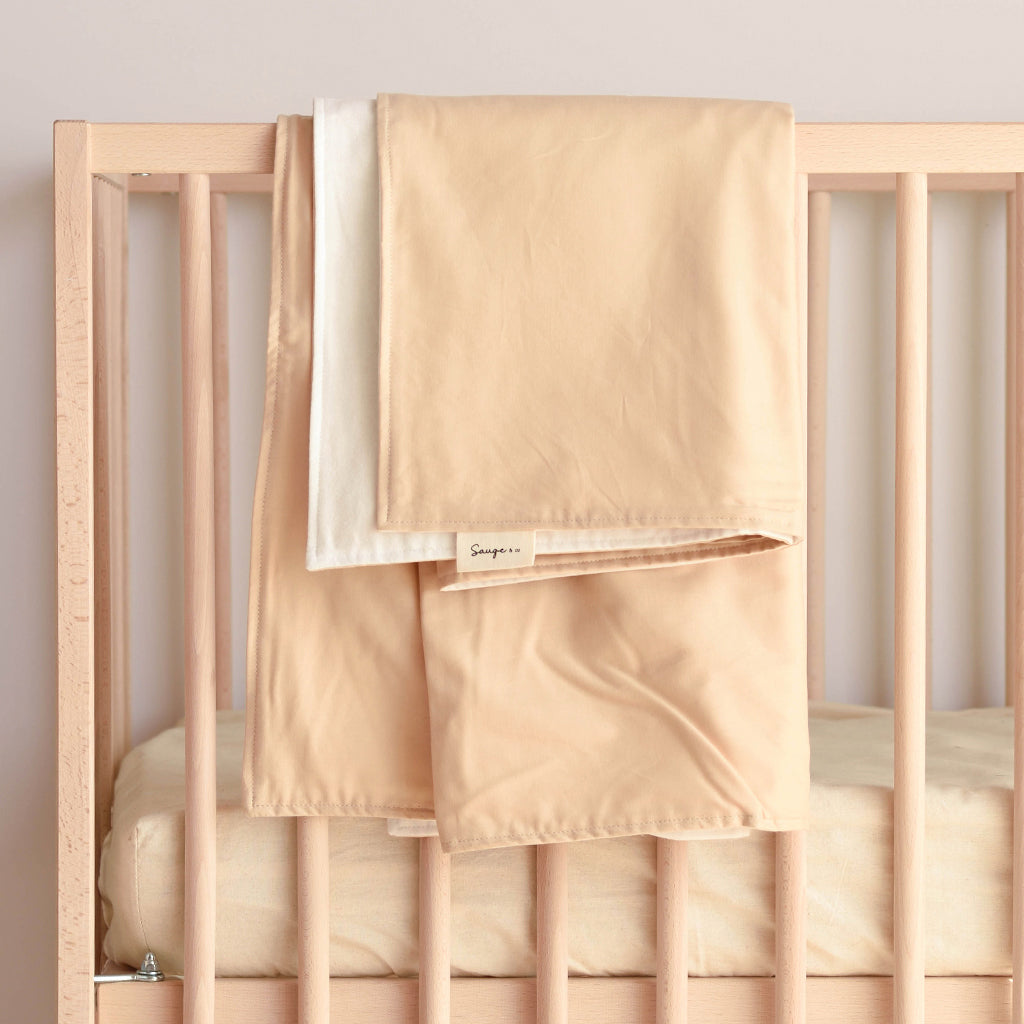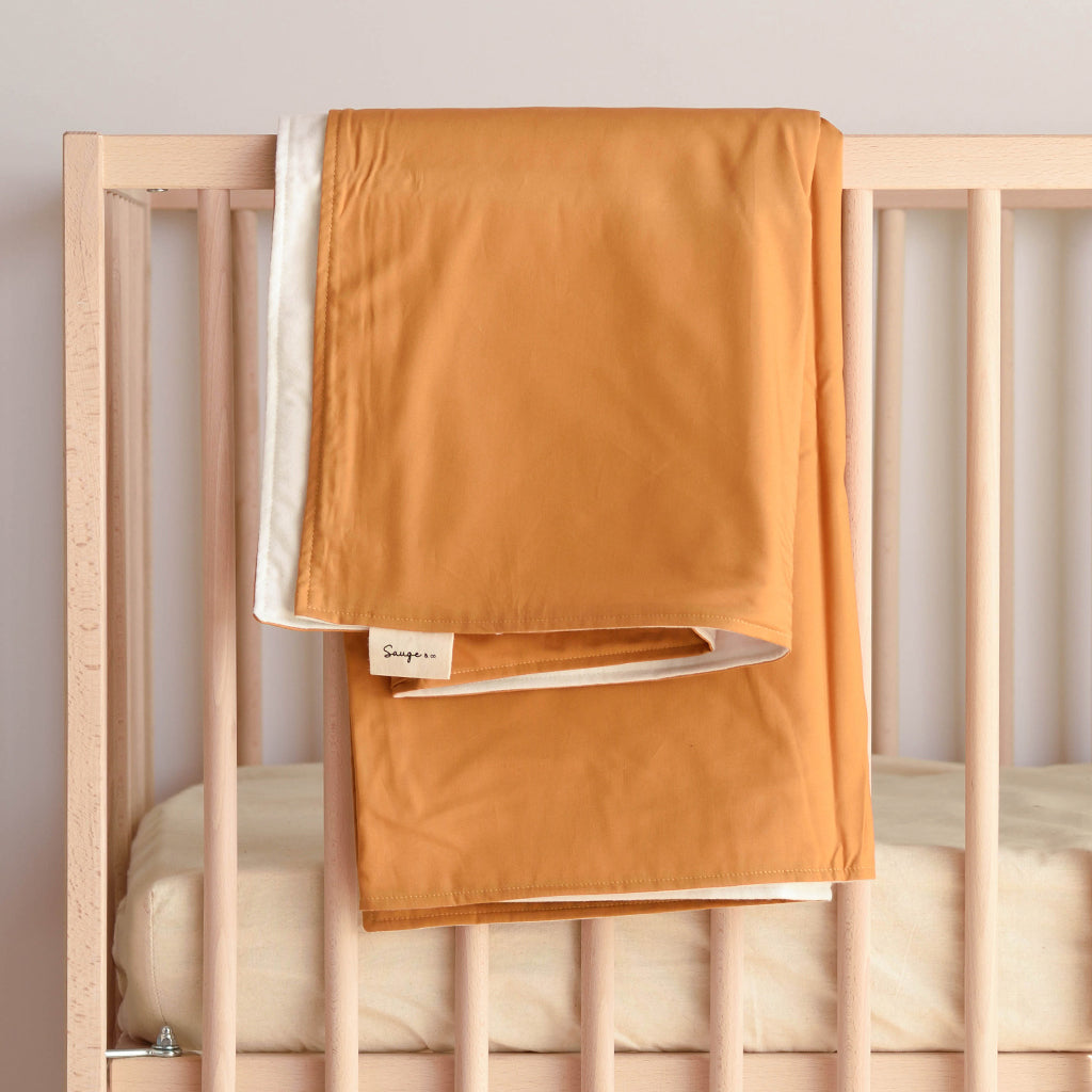 Magnifiques couvertures faites d’un coton uni et et doublée d’une douce flanelle de coton certifié Oeko-Tex au dos vous charmera à coup sûr.