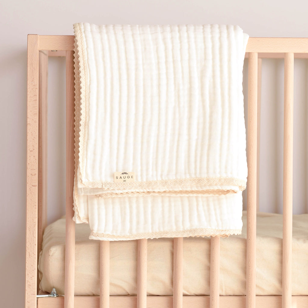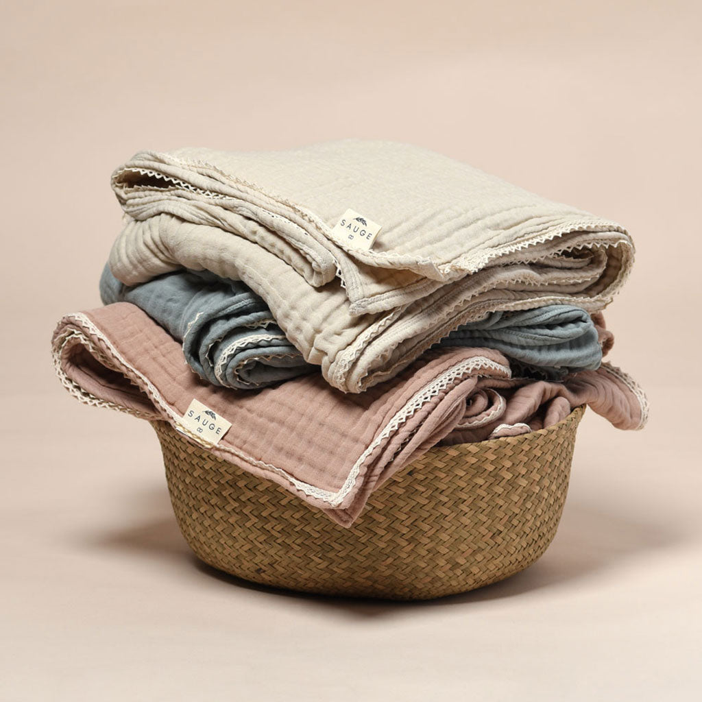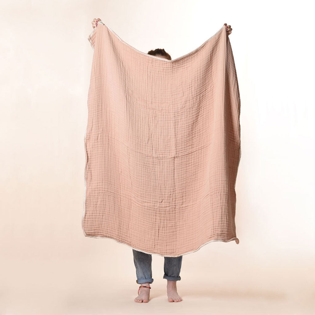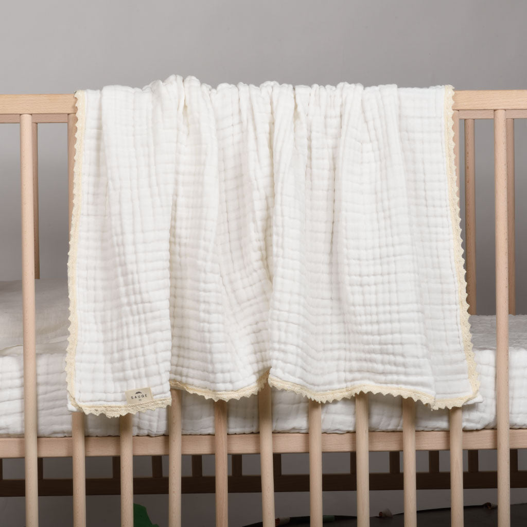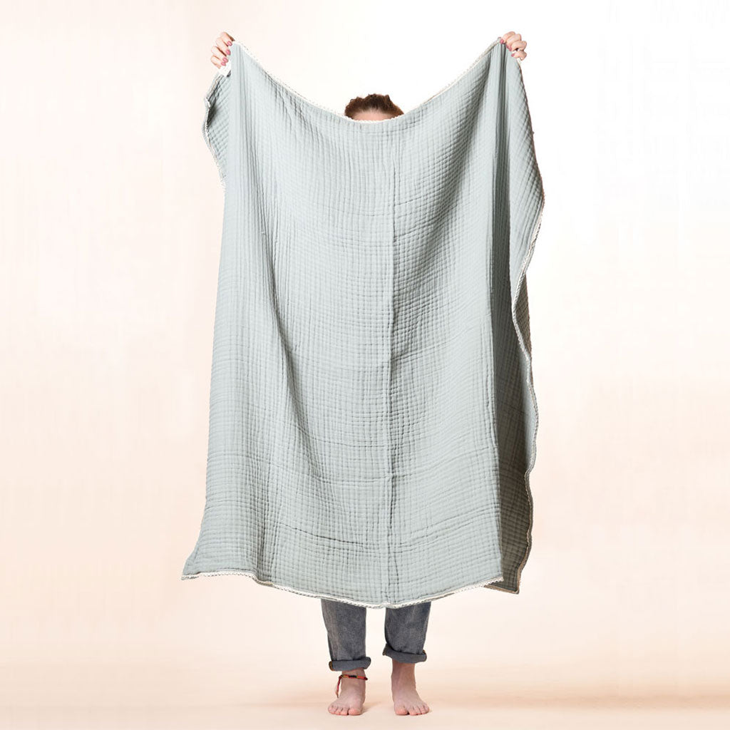 Cette couverture en mousseline de coton est composée de 6 épaisseurs de gaze de coton, lui conférant une douceur ultra moelleuse, tout en préservant les propriétés respirantes de la mousseline.