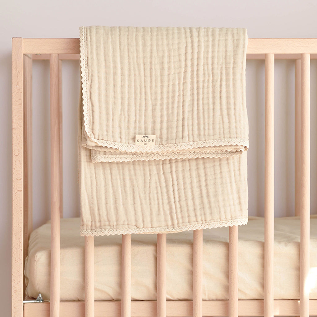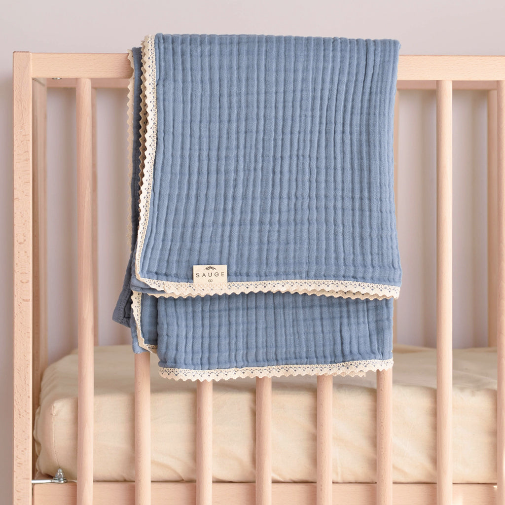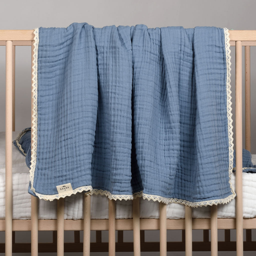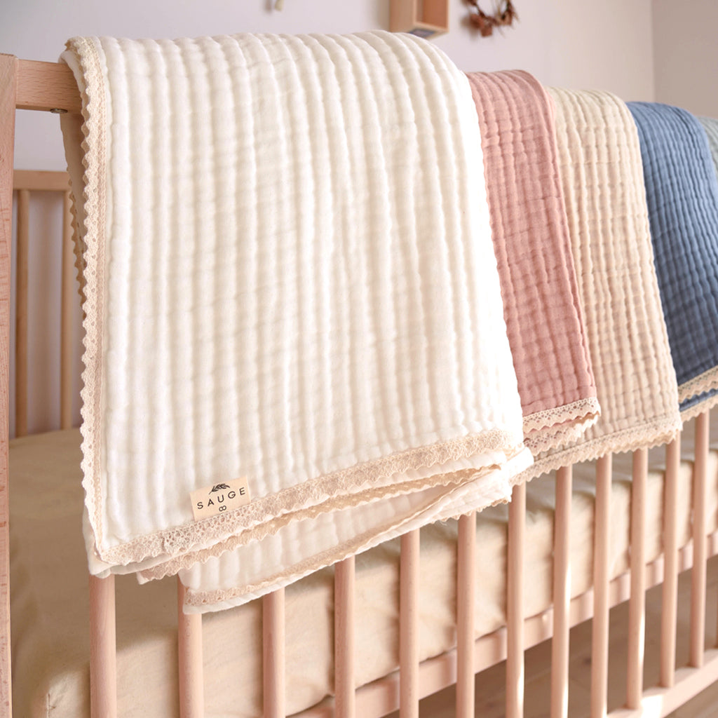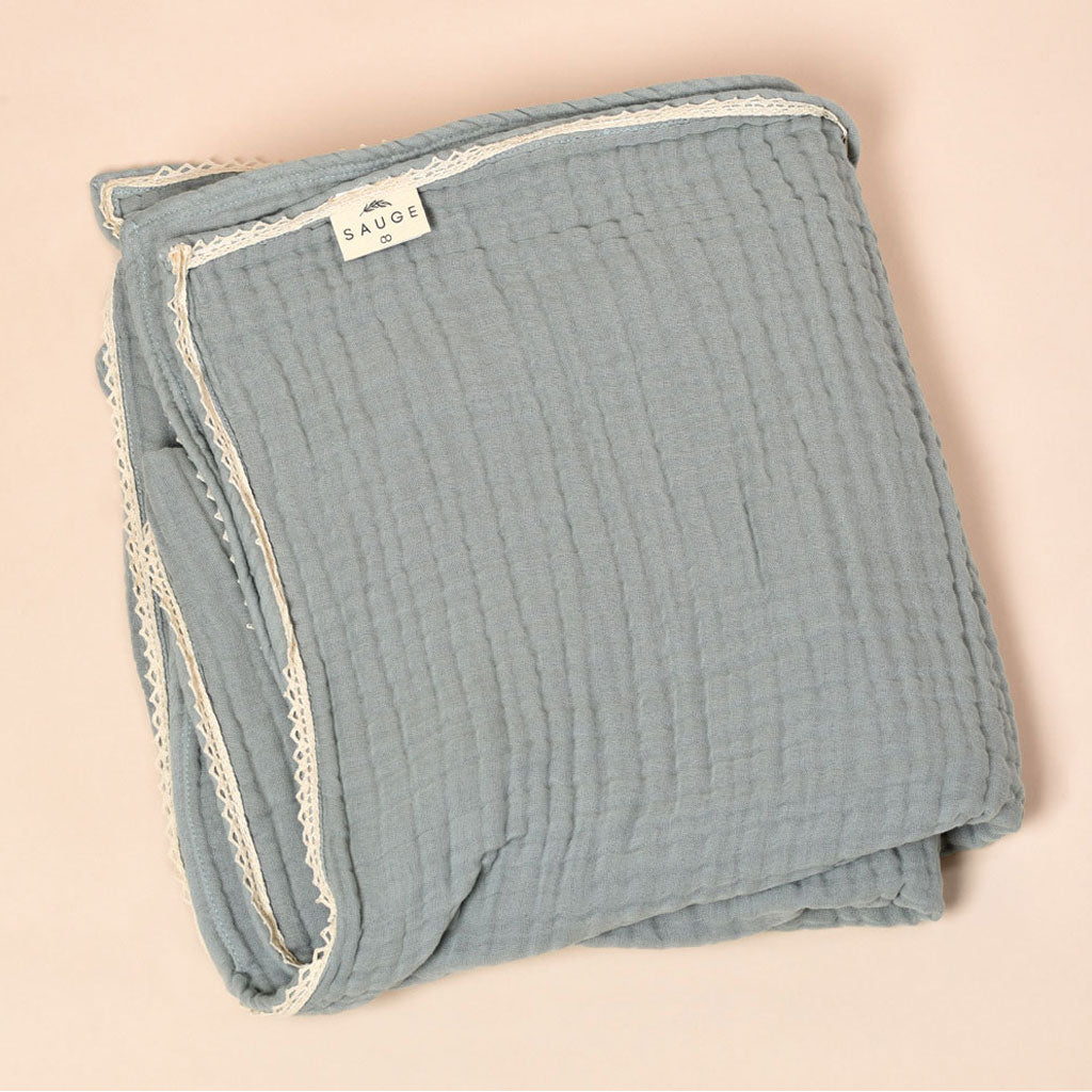Cette couverture en mousseline de coton est composée de 6 épaisseurs de gaze de coton, lui conférant une douceur ultra moelleuse, tout en préservant les propriétés respirantes de la mousseline.