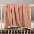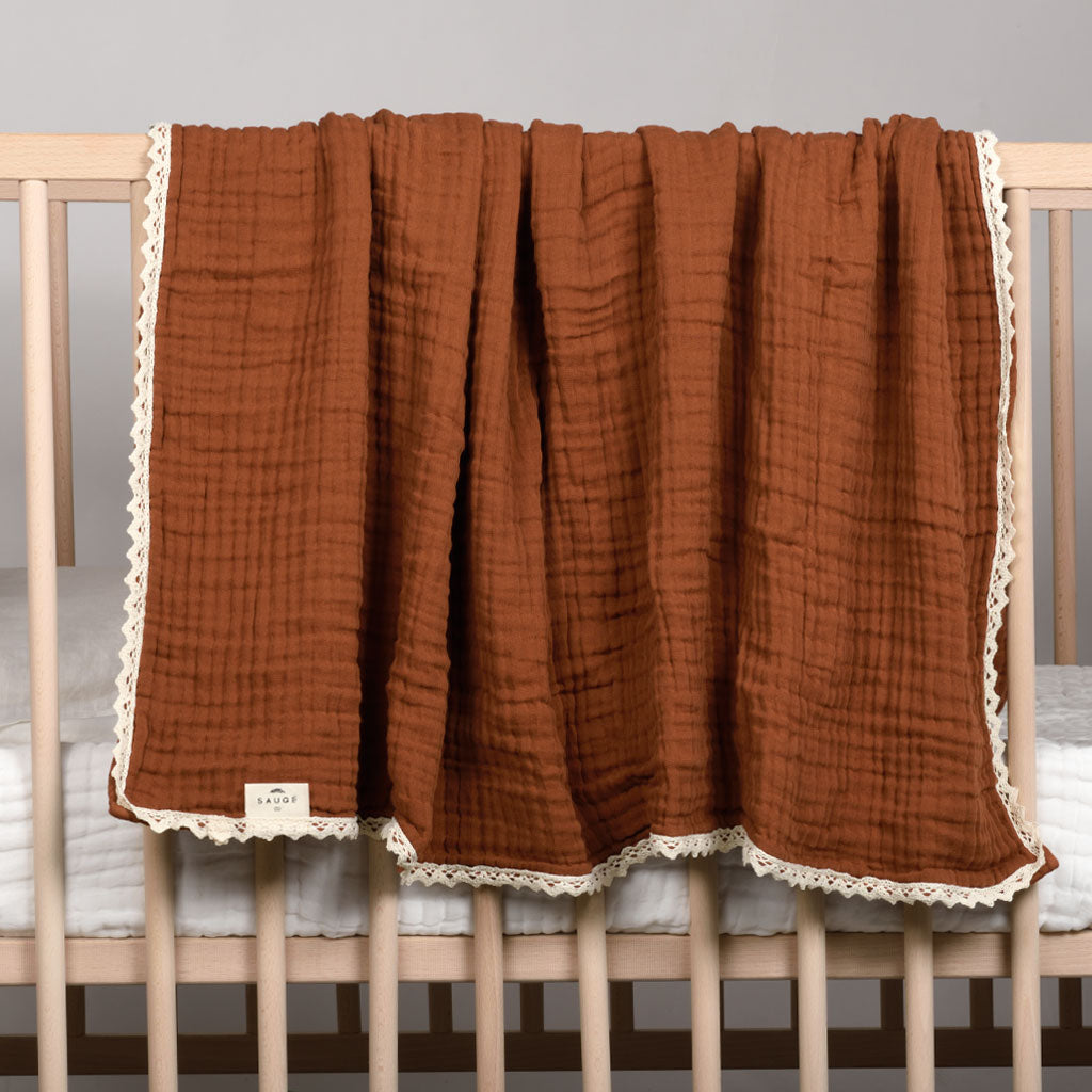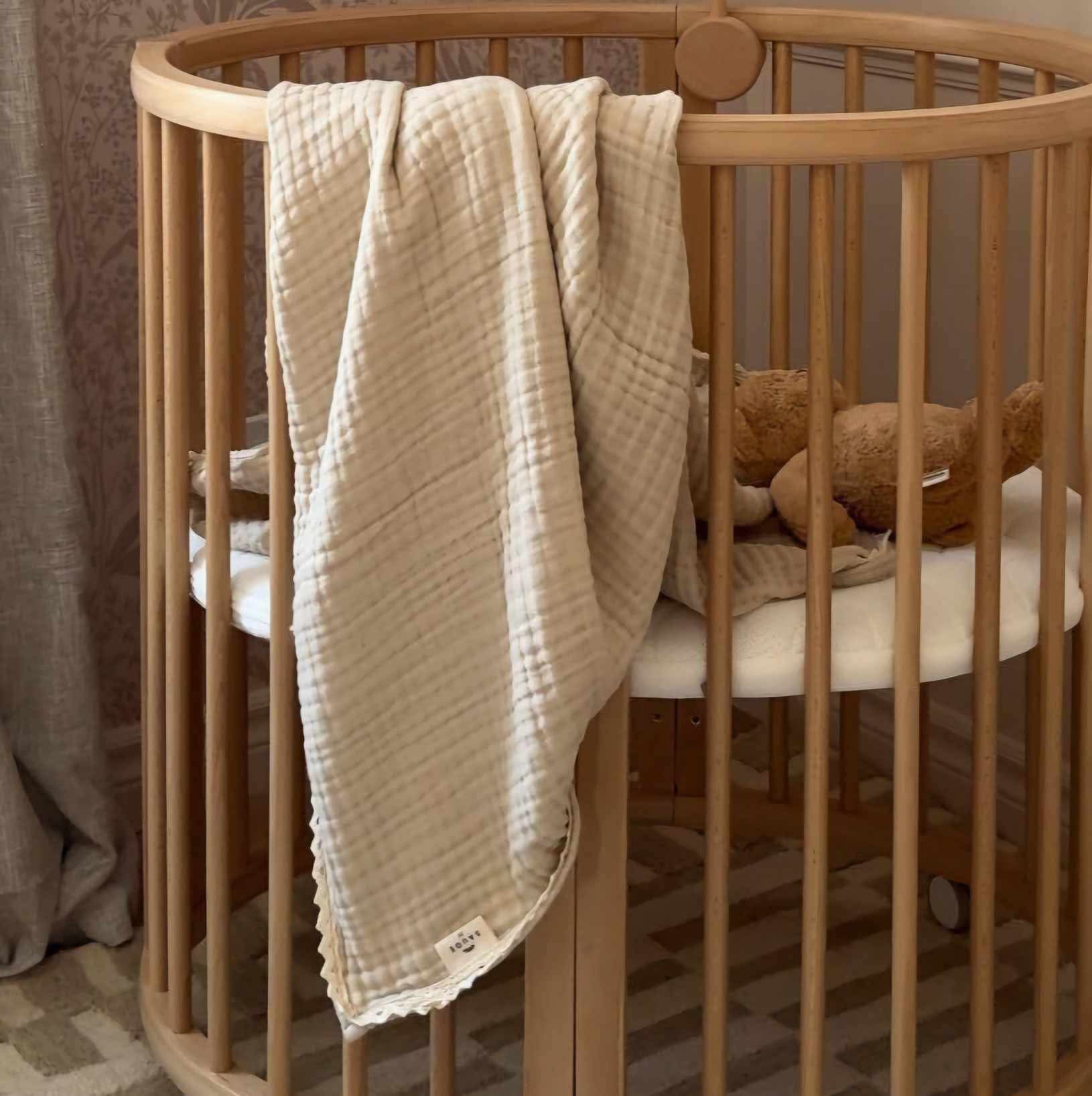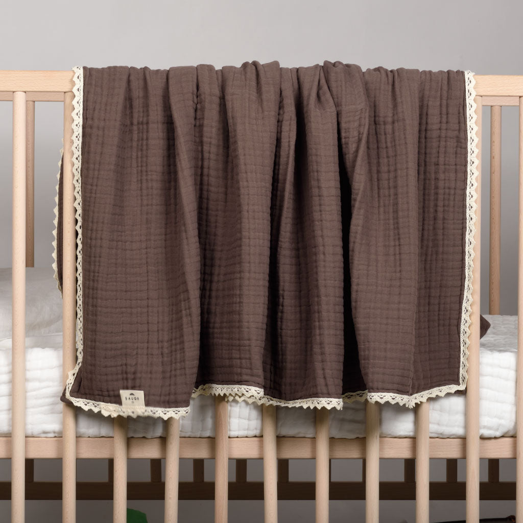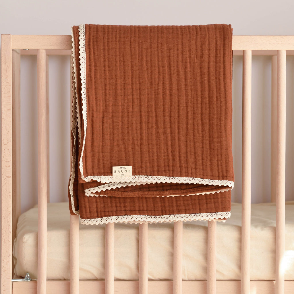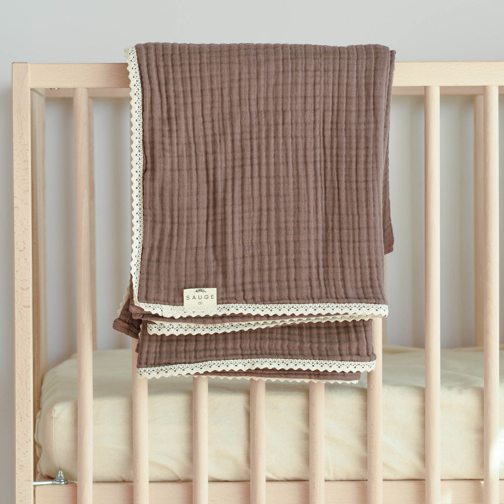 Cette couverture en mousseline de coton est composée de 6 épaisseurs de gaze de coton, lui conférant une douceur ultra moelleuse, tout en préservant les propriétés respirantes de la mousseline.