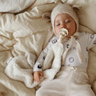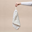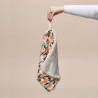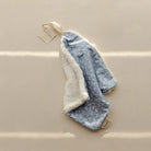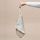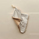 Cette magnifique doudou fait d’un côté d’un coton/lin et doublée d’un minky style sherpa extrêmement doux, vous charmera au premier toucher. En touchant la doudou votre bébé pourra éveiller son sens du toucher avec ces douces textures et peut aussi devenir un item réconfortant. Il est possible d’attacher une suce ou un jouet à la ganse de coton.
